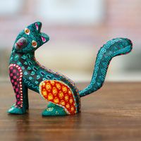 Wood Cat Alebrije Figurine in Green Hand-Painted in Mexico 'Curious Cat in Green' Item ID: 2671807699