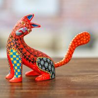 Wood Cat Alebrije Figurine in Red Hand-Painted in Mexico 'Curious Cat in Red' Item ID: 2671807886