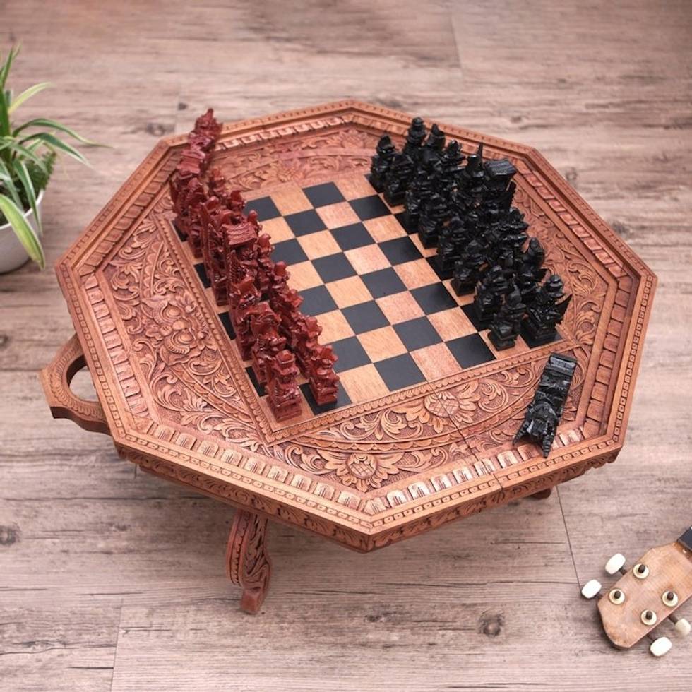 "I started to learn how to carve in 1968 and began my full-time apprenticeship in 1981. I studied under a master carver who taught me how to be more creative, even with ordinary figures. His creativity sparked my own. It was then that I had the idea to create chess sets, not only in the Western style, but also in a style that reflected Balinese culture.