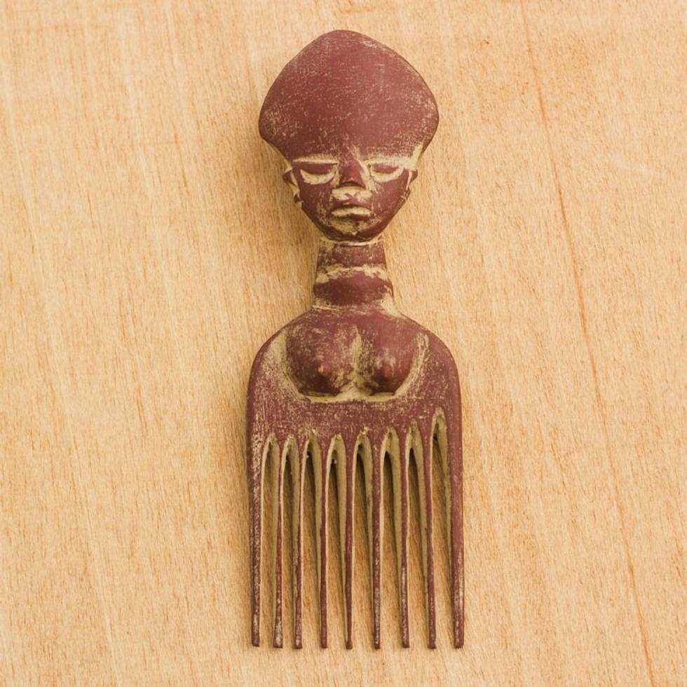 Wood Comb-Shaped Wall Art in Red from Ghana 'Red Osele' Item ID: 2671803778