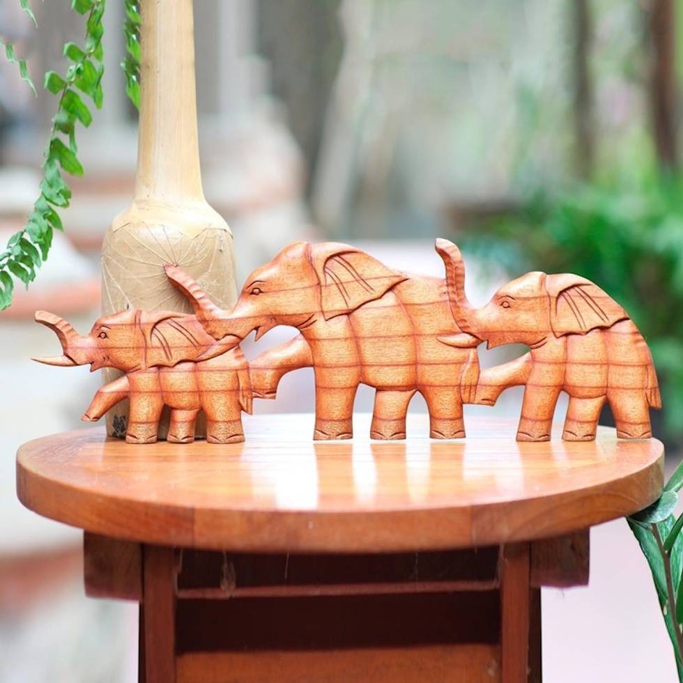 Wood Elephant Relief Panel 'Hand in Hand' Item ID: 2671698888