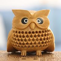 Wood Figurine of An Owl Exquisitely Hand-Carved in India 'Owl Charm' Item ID: 2671786700