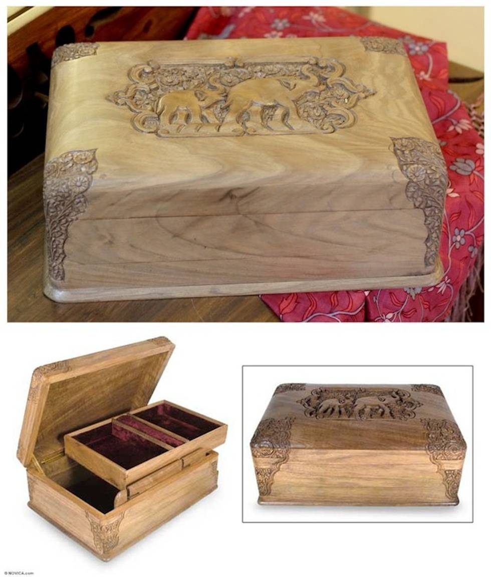 Wood Jewelry Box 'Elephant Leisure' Item ID: 2669892359