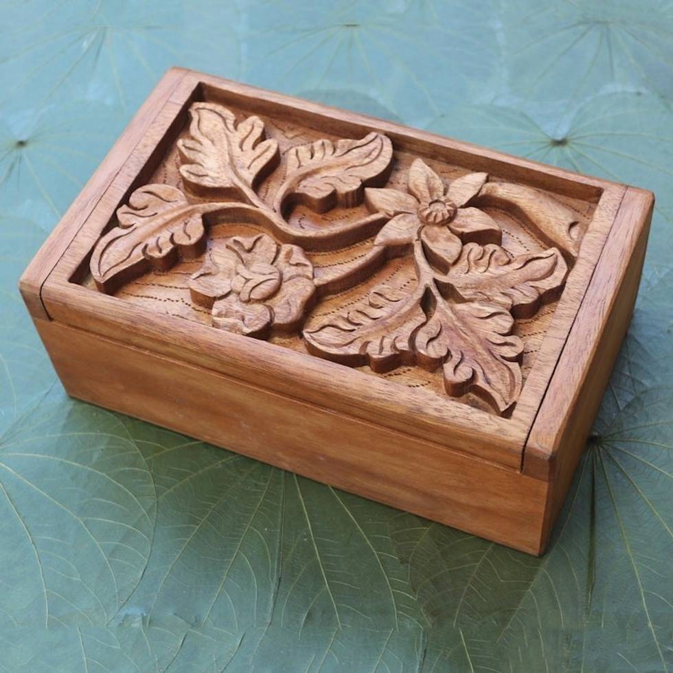 Wood Jewelry Box Handmade Flower and Leaf Motif 'Growing Flower' Item ID: 2671737053