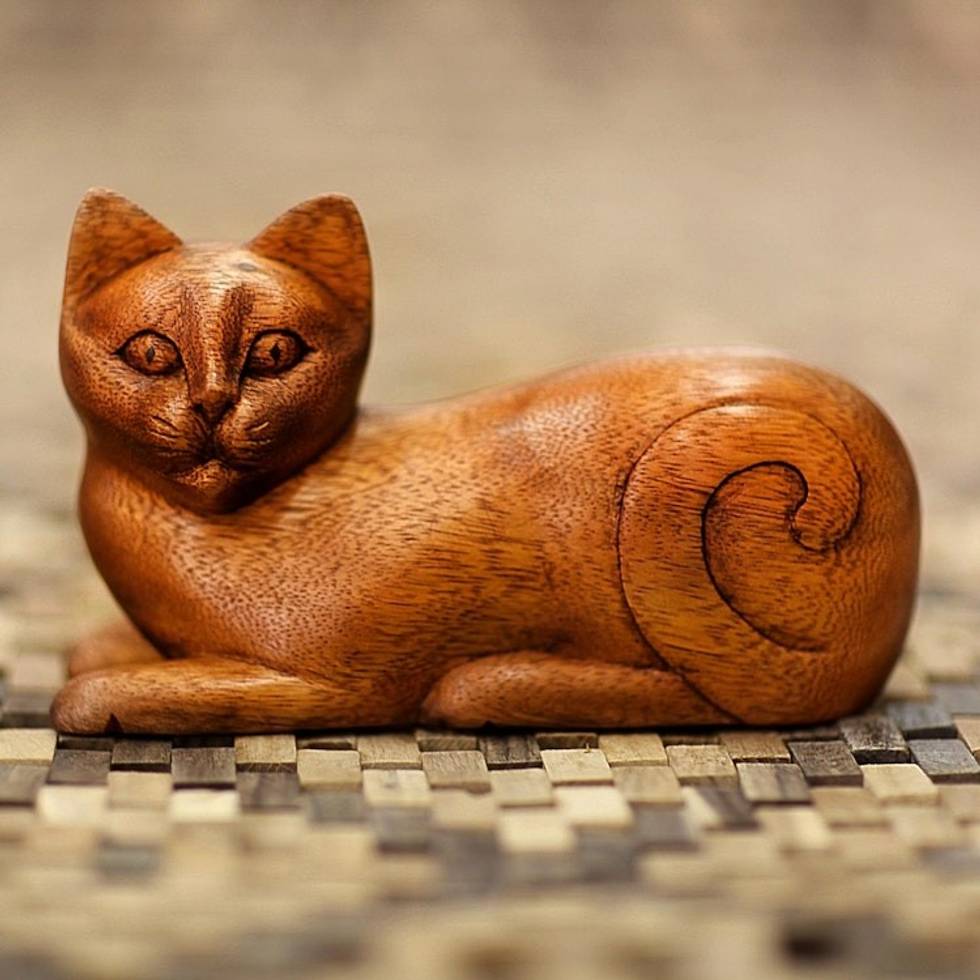 Wood Kitty Sculpture from Indonesia 'Balinese Cat' Item ID: 2671700884