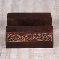 Wood Mobile Device Stand with Hand Carved Floral Motif 'Desk Garden' Item ID: 2669956343