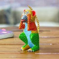 Wood Monkey Alebrije Figurine Painted in Green and Yellow 'Astonished Monkey' Item ID: 2671640400