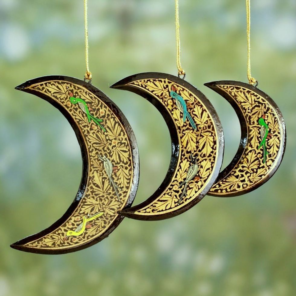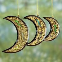 Wood Moon Christmas Ornaments with Bird Design set of 3 'Moon Birds' Item ID: 2669924937
