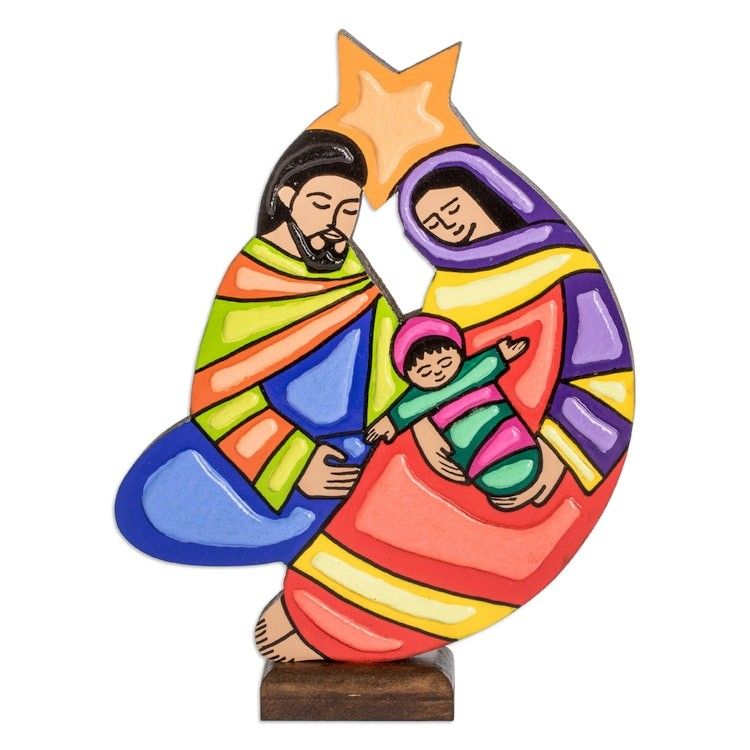 Wood Nativity Sculpture with Star from El Salvador 'Light and Hope' Item ID: 2671771640