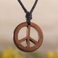 Wood Peace Sign Pendant with Black Cotton Cord 'Peruvian Peace' Item ID: 2671820407