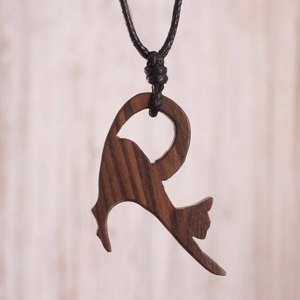 Wood Pendant Necklace of a Cat from Peru 'Relaxing Stretch' Item ID: 2671695333
