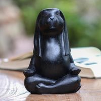 Wood Pregnant Yoga Bunny Sculpture in Black from Bali 'Pregnant Yoga Bunny in Black' Item ID: 2671744843