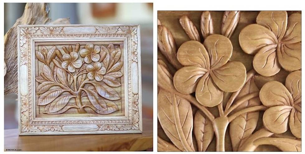 Wood relief panel 'Frangipani Flowers' Item ID: 2671701908