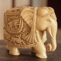 "A mighty elephant carved by hand of kadam wood is a beautiful symbol of India. But Suresh and Devender Garg covers the powerful contours with a myriad of jungle wildlife - lions, tigers and deer. Sculpted in vivid detail, this novel statuette is an exquisite example of one of the country's oldest art forms."
