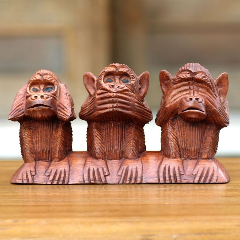 Wood Sculpture from Indonesia 'Three Wise Monkeys' Item ID: 2671821851
