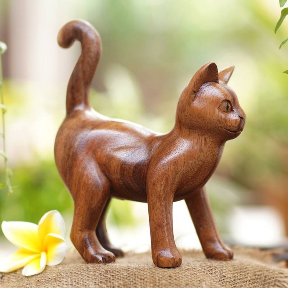 Wood Sculpture from Indonesia 'Guardian Cat' Item ID: 2671474991