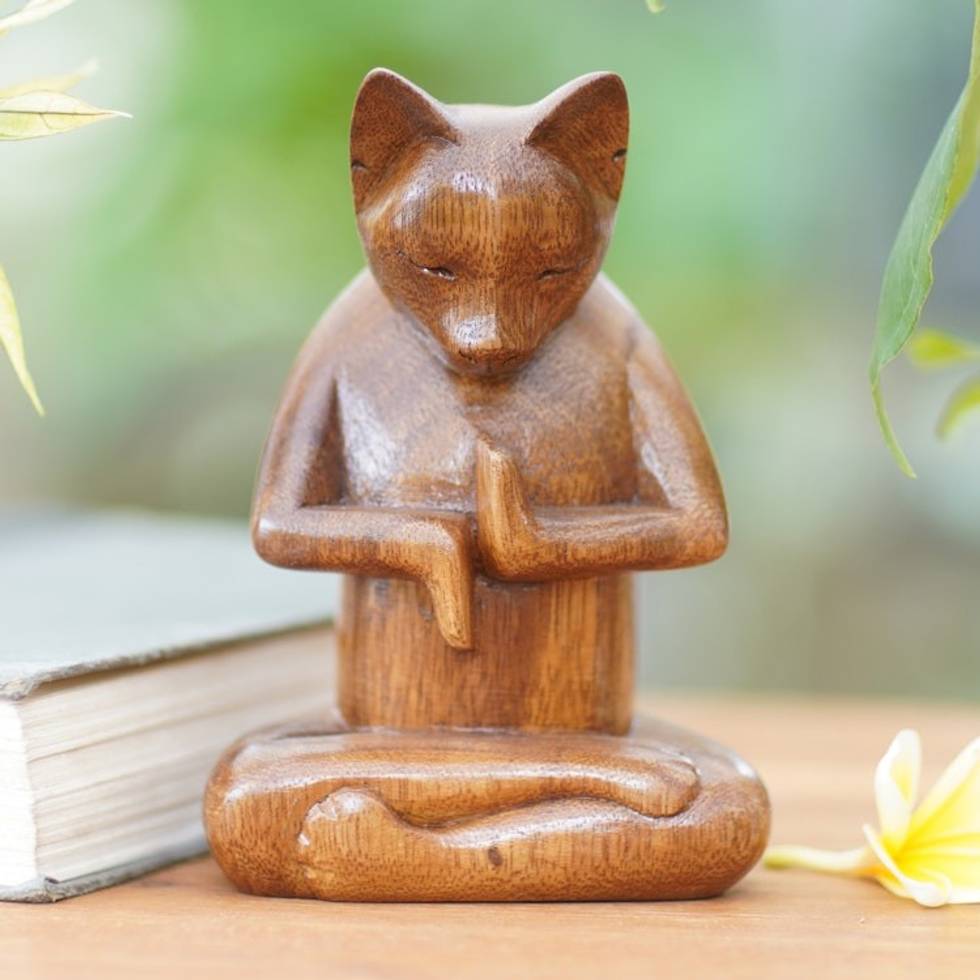 Wood sculpture 'Full Lotus Cat' Item ID: 2671700331