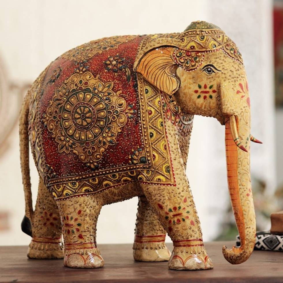 Wood Sculpture Hand-Painted in India 'Royal Elephant of Delhi' Item ID: 2671787326