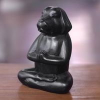 Wood Sculpture of Black Puppy Dog in Meditation Pose 'Meditating Black Puppy' Item ID: 2676667199