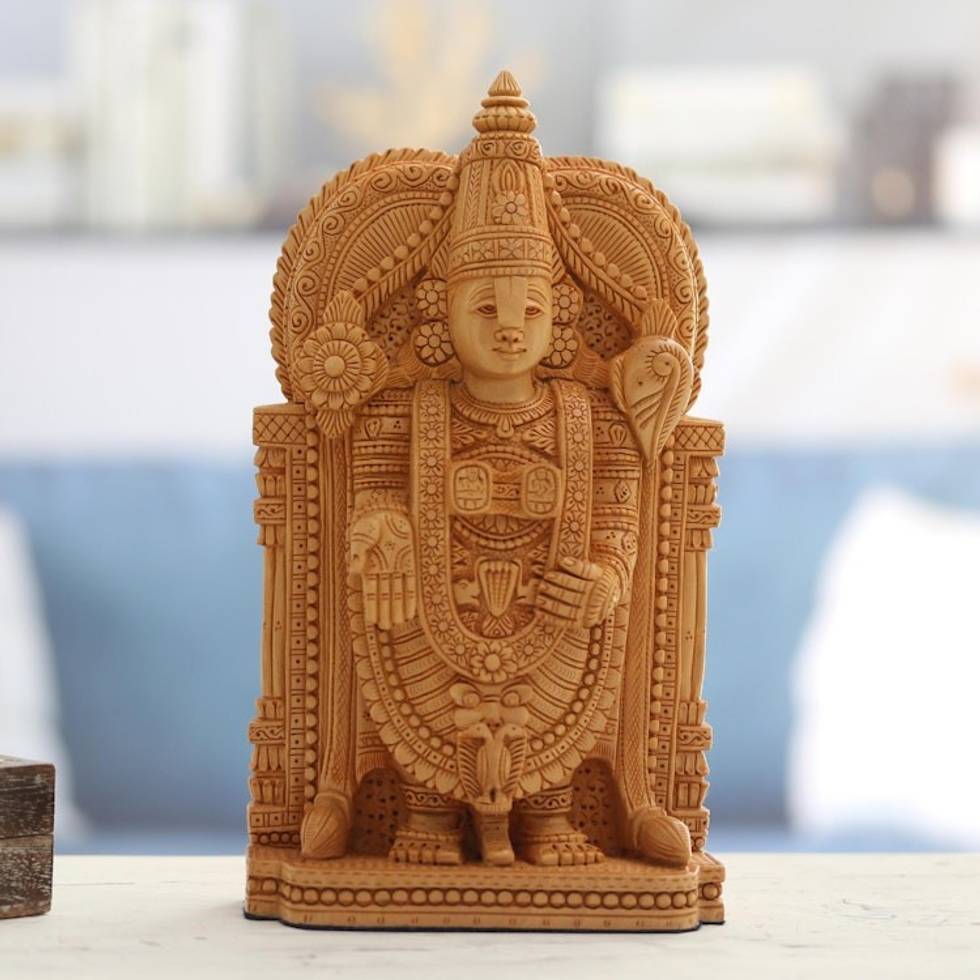 Wood Sculpture of God Balaji Vishnu Hand-Carved in India 'Tirupati Balaji' Item ID: 2669889385