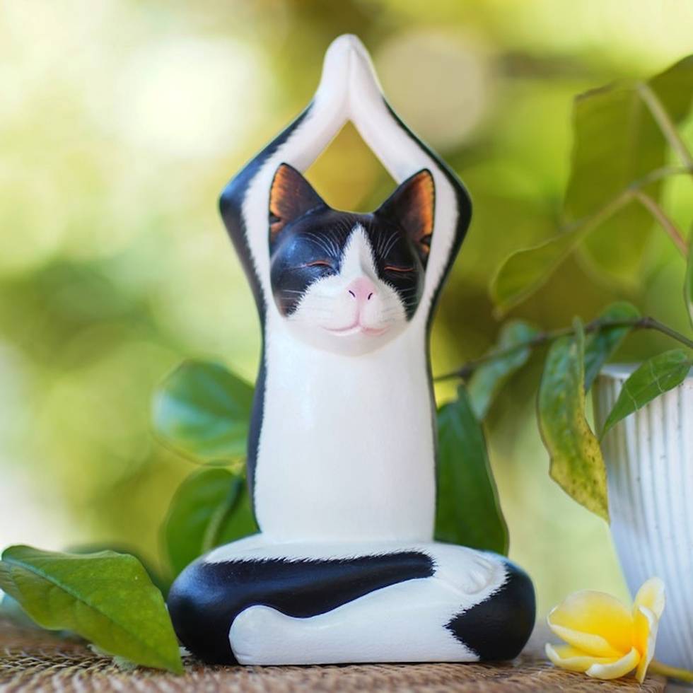 This meditating Cat will look over my adult daughter doing her yoga. She received it as a Christmas gift and truly likes it!