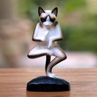 Wood sculpture 'Vrkasana Yoga Cat' Item ID: 2671700868