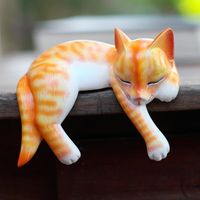 Wood Sleeping Cat Statuette Orange Tabby 'Napping Cat' Item ID: 2671483182