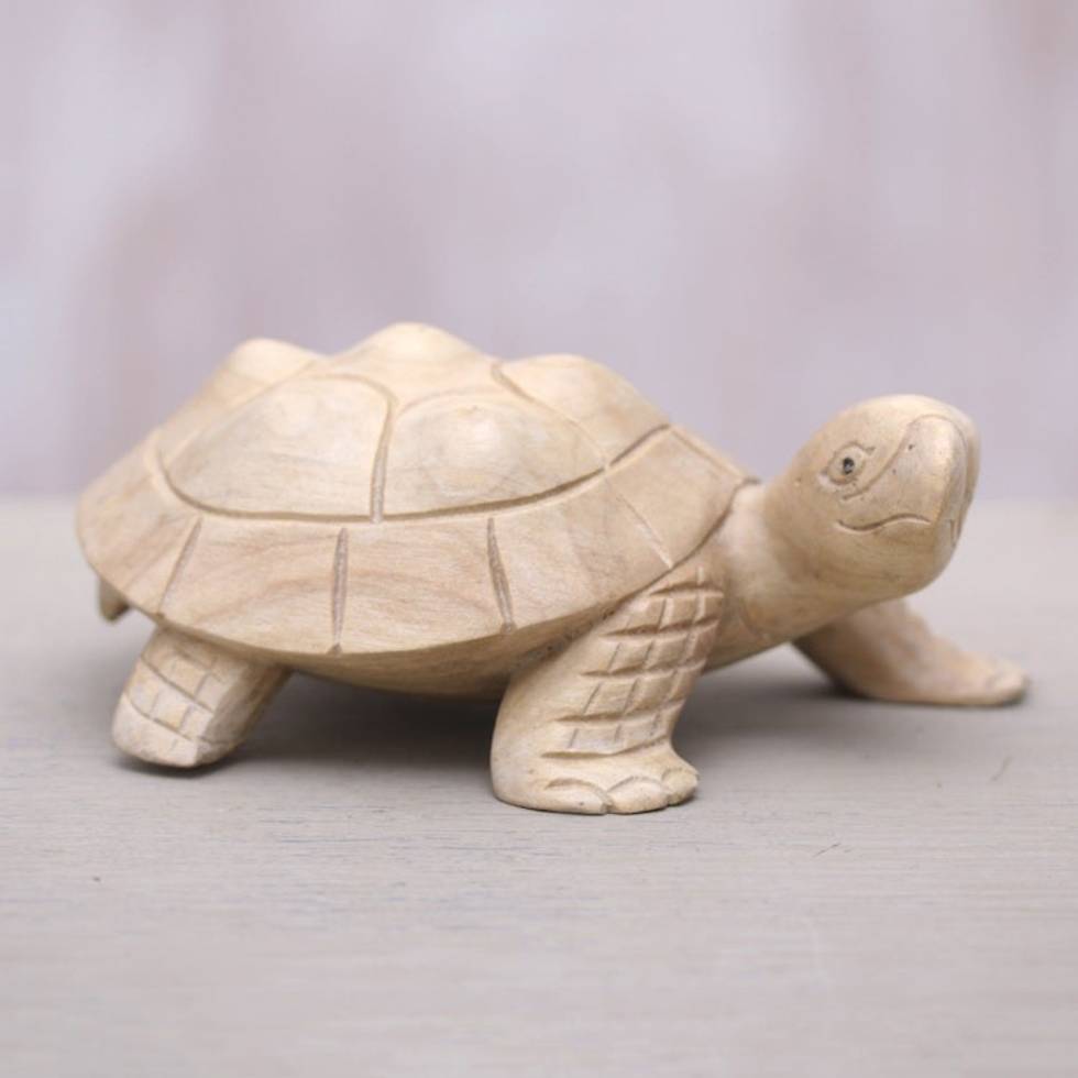 Wood Terrapin Turtle Statuette Hand Carved in Bali 'Papa Terrapin' Item ID: 2671821782
