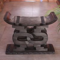 "I am currently the chief carver for the king of the Ashanti, because of my great ability in carving. Some of my work for the king includes objects with the gye nyame symbol for the supremacy of God, stools, staffs and other royal and ceremonial objects. I have trained and qualified some ten men in the art of skilled carving. I draw inspiration from traditional kente cloth designs, from my family background, and from our rich Ashanti tradition."