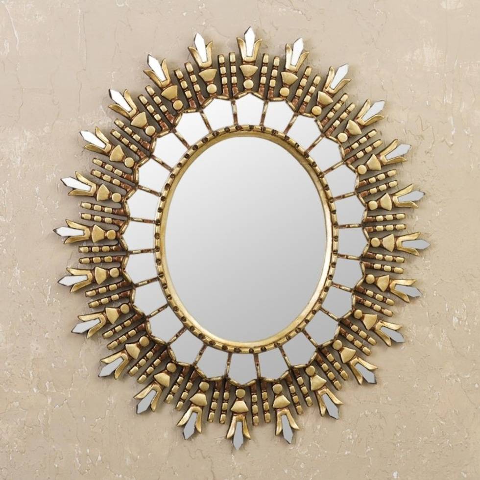 Wood Wall Mirror with Bronze Leaf from Peru 'Oval Colony' Item ID: 2671689960