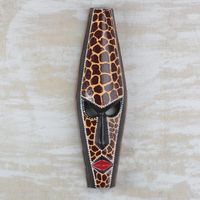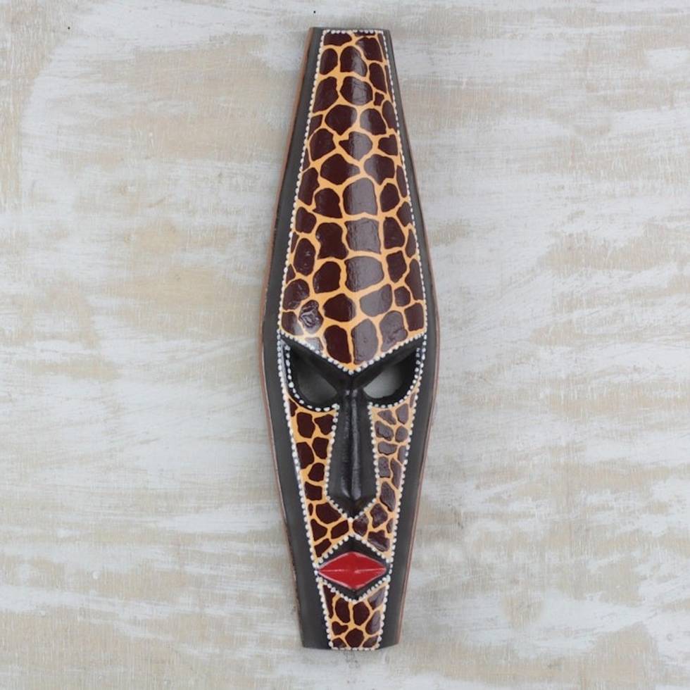 Wooden African Mask with Giraffe Motifs from Ghana 'Graceful Giraffe' Item ID: 2671806247