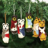 Wool and Glass Beaded Holiday Ornaments Set of 6 'Cozy Bear Pairs' Item ID: 2671625525