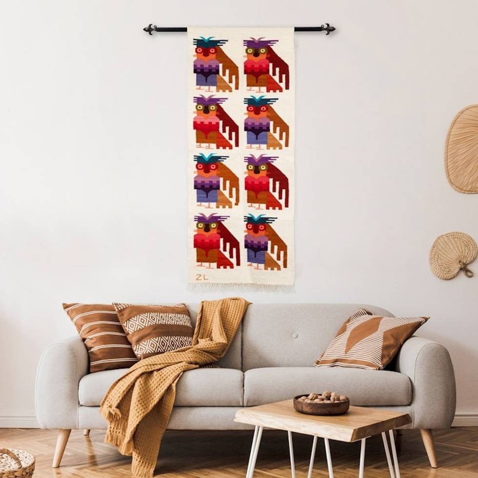 Wool Blend Tapestry of Andean Owls Hand-Woven in Peru 'Andean Owls' Item ID: 2671697755