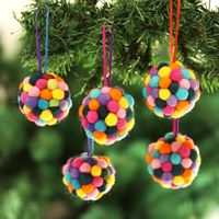 Wool Disco Ball Holiday Ornaments Set of 5 'Disco Christmas' Item ID: 2671789085
