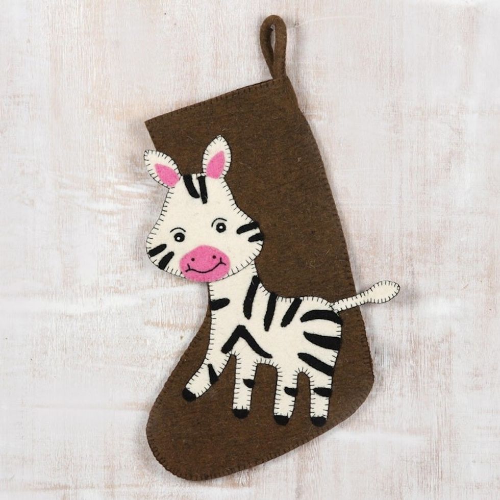 Wool Felt Christmas Stocking Zebra 'Zany Zebra' Item ID: 2671789879