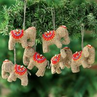 Wool Felt Elephant Ornaments from India Set of 6 'Cute Elephants' Item ID: 2671789274