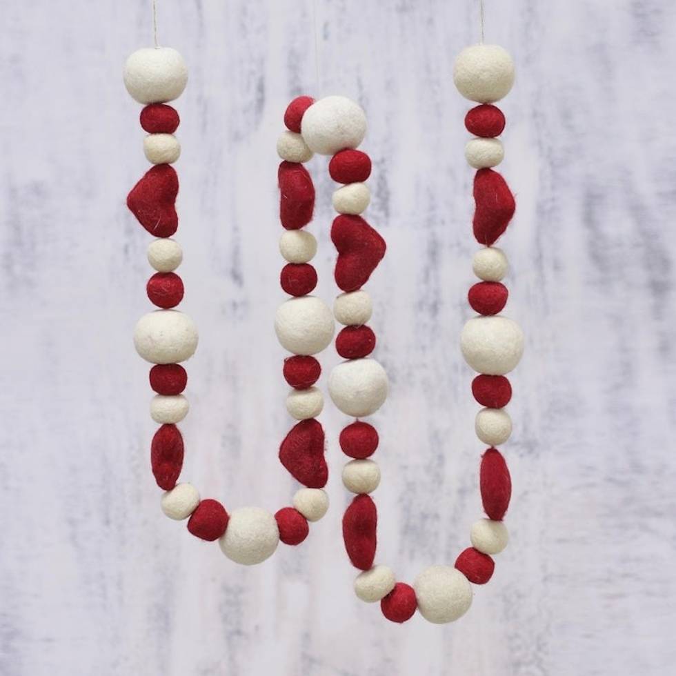 Wool Felt Holiday Heart Garland in Red and Ivory 'Hearts and Baubles' Item ID: 2671791185