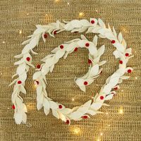 Wool Felt Leaf Holiday Garland in White and Red from India 'Winter Decorations' Item ID: 2671781502