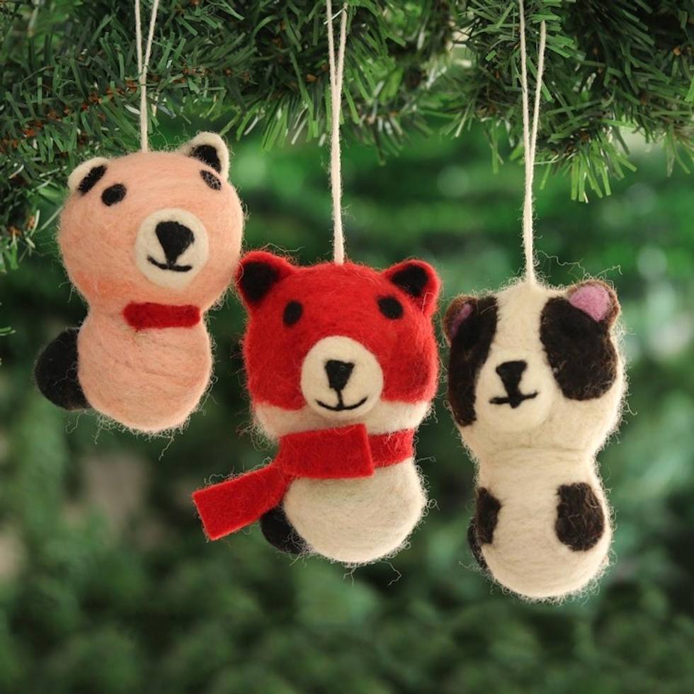 Wool Felt Panda Ornaments from India Set of 3 'Panda Charm' Item ID: 2671789582