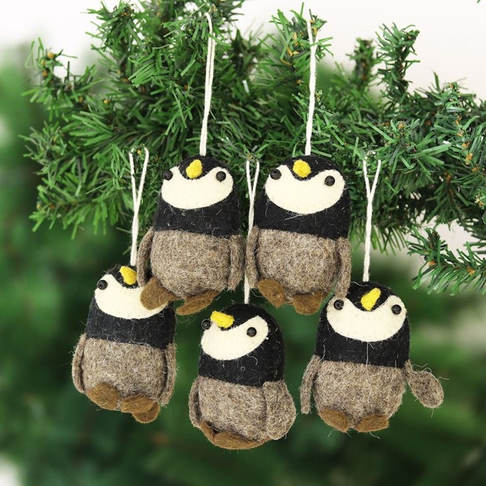 Wool Felt Penguin Ornaments Set of 5 'Penguin Charm' Item ID: 2671625702