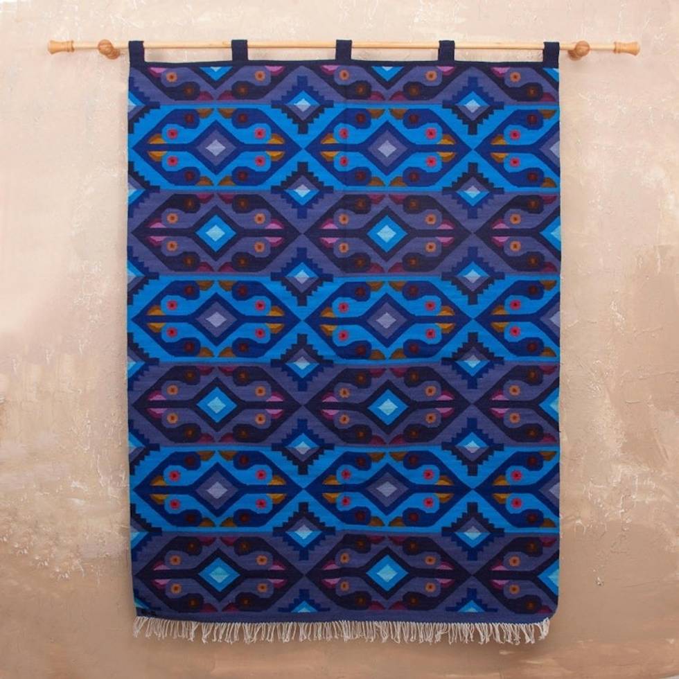 Wool tapestry 'Blue Roosters' Item ID: 2671399516