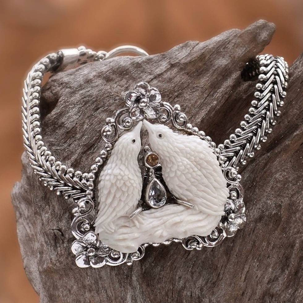 World Peace Dove Pendant Bracelet, Blue Topaz and Citrine 'Peace, Love and Affection' Item ID: 2669922397