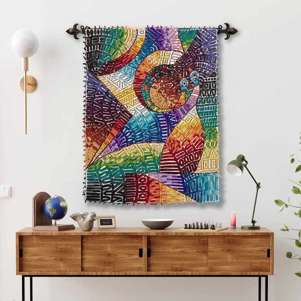 This handloomed tapestry is crafted with an alpaca, cotton, wool and polyester blend. Drawing inspiration from doves, and determined to spread a message of peace and honesty, Teofilo designed an intricate pattern of traditional regional motifs.