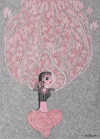 World Peace Project Surreal Madhubani Style Painting India 'Feminine Tree' Item ID: 2669890103