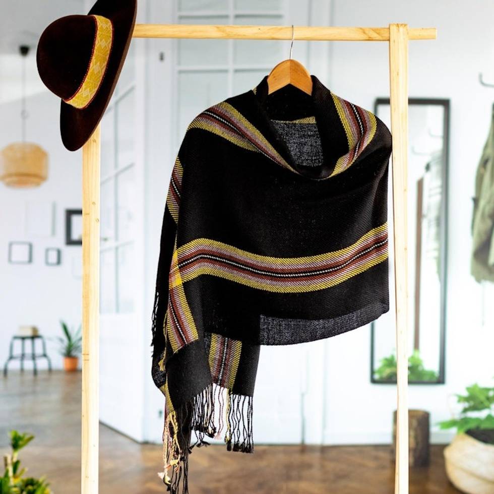 Woven 100 Alpaca Shawl in Black from Peru 'Elegant Midnight' Item ID: 2671695561