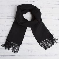 Woven Alpaca Blend Scarf for Men in Solid Black 'Ebony Gift of Warmth' Item ID: 2670730374