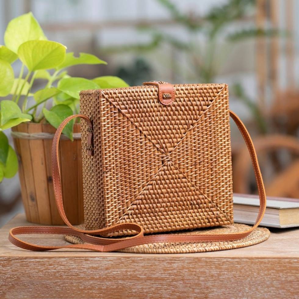 Woven Bamboo Sling Bag with Faux Leather Accent 'Lucky Lady' Item ID: 2671747632