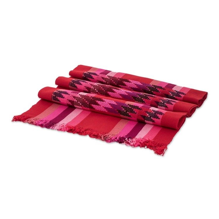 Woven Colorful Cotton Table Runner in a Poppy Base Hue 'Poppy Rainbow' Item ID: 2671769587