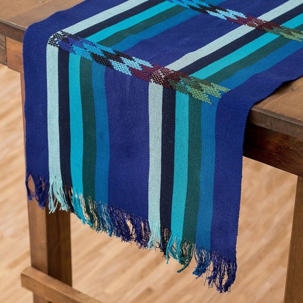 Woven Colorful Cotton Table Runner in an Indigo Base Hue 'Indigo Rainbow' Item ID: 2671769842