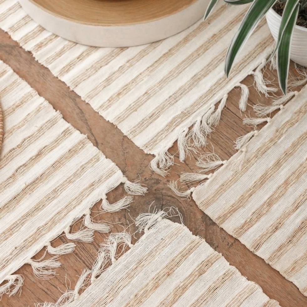 Woven Cotton Blend Placemats from Bali Set of 4 'Traditional Table' Item ID: 2671746658